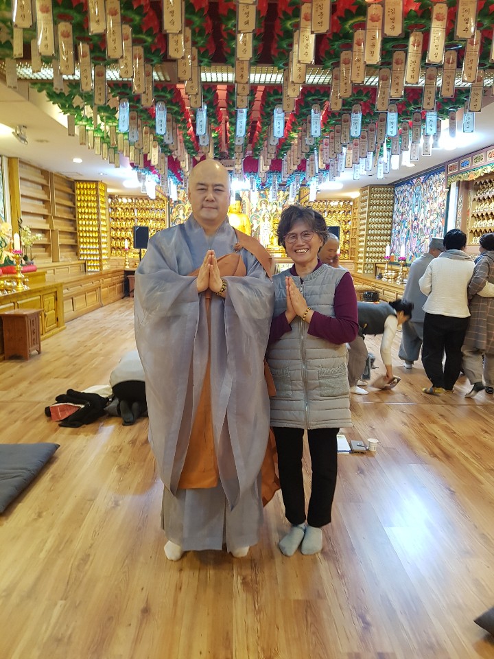 새신도님과 회주법담스님께서 바쁘신 중에도 사진한컷 찍으셨습니다