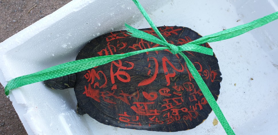 매달 방생기도갈때 거북이등에 경명주사로 거북이 등에