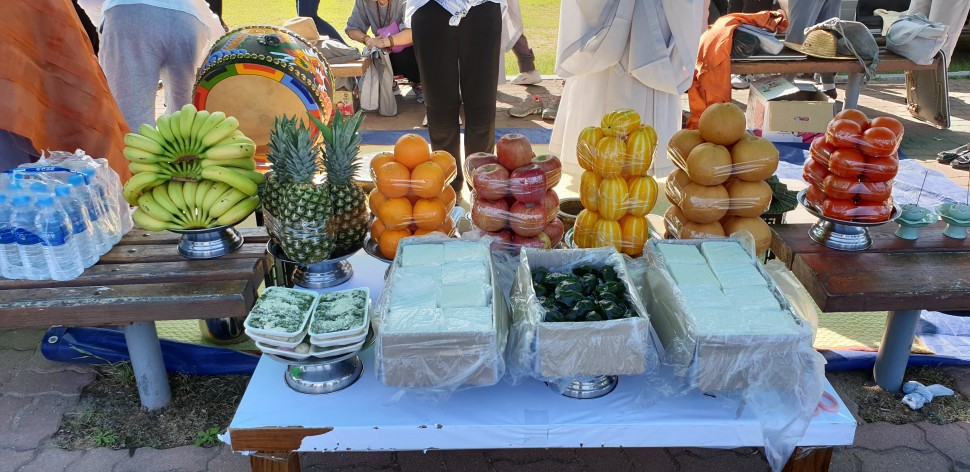 준비한 공양물을 미리 차려놓고