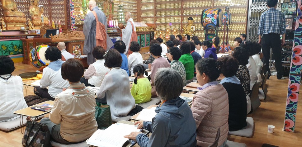 오전 사시법회때 울산 신도님들 약 100여명 오셔서