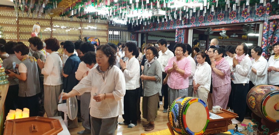 정말 많은인파가 모여 200평의 법당이