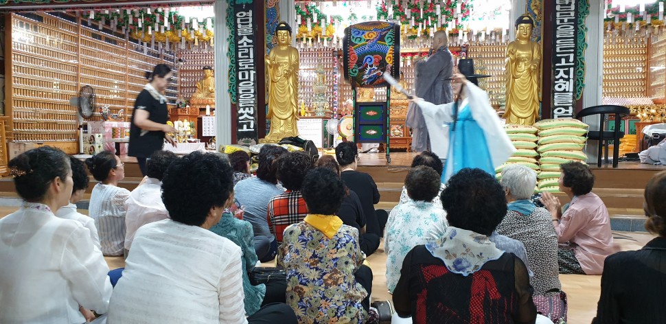 무병장수를 기원하는 사람도 약사재일 법회어 동참하시어